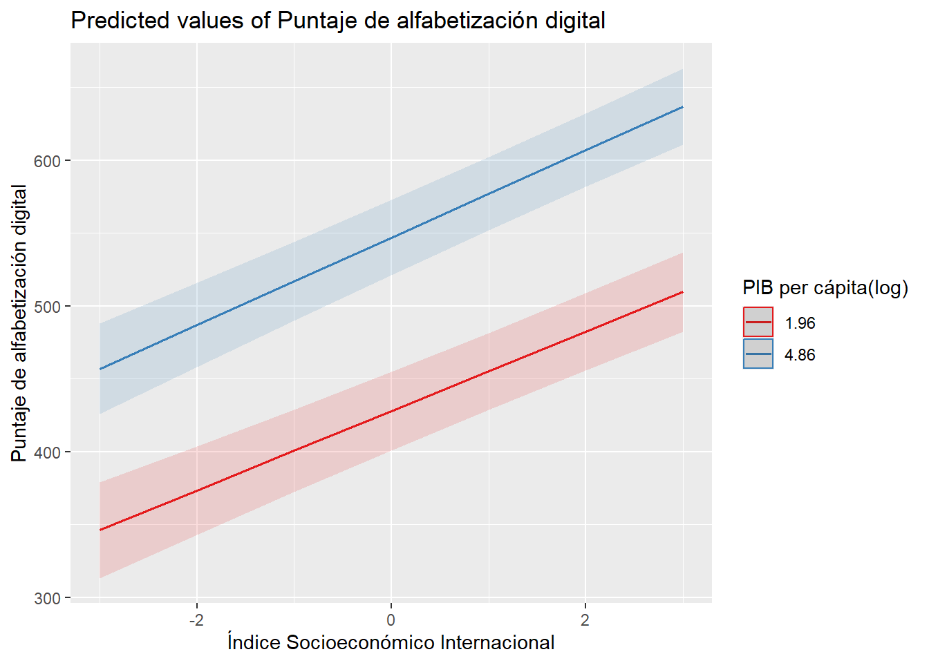 \(H_6\) El efecto positivo del nivel socioeconómico sobre la alfabetización digital es más intenso en países con menor PIB per cápita